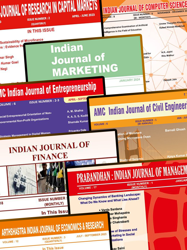 MEGA COMBO OF 8 JOURNALS: Indian Journal Of Marketing Indian Journal Of Finance Prabandhan Indian Journal Of Management Arthshastra Indian Journal Of Economics And Research Indian Journal Of Research In Capital Markets AMC Indian Journal Of Entrepreneurship AMC Indian Journal Of Civil Engineering And Indian Journal Of Computer Science.